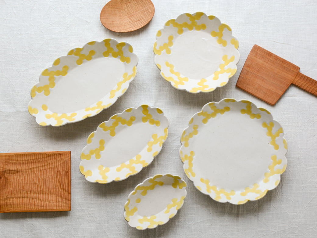 福岡にて作陶されている、本郷里奈さんのミモザとラピスの器が再入荷しました。