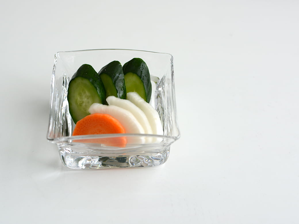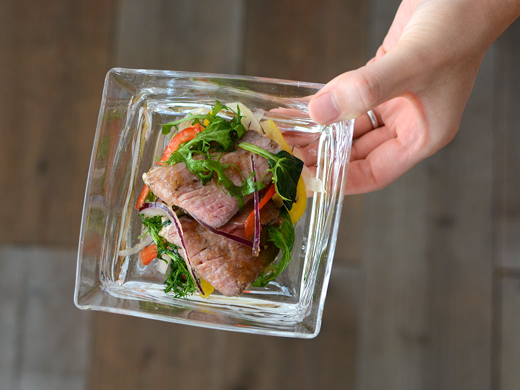 吹きガラスでつくられる瑞々しい透明感にあふれる美しい器。沖澤さんの作品には華やかで上品な雰囲気のなかにも力強さを感じられるのが特徴です。