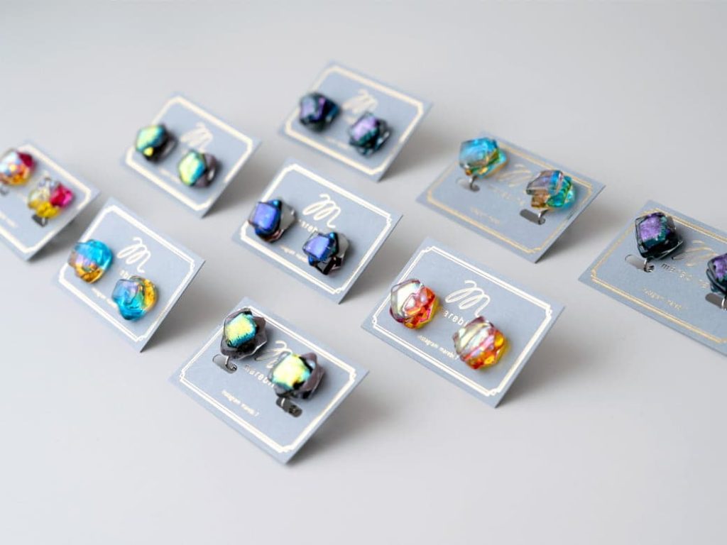 ガラスでしか表現できない多彩な表情。ピアスやイヤリングは、お顔周りの印象を変えてくれる効果的なアイテムだから、気分にあわせて色々と選べると楽しいですよね◎