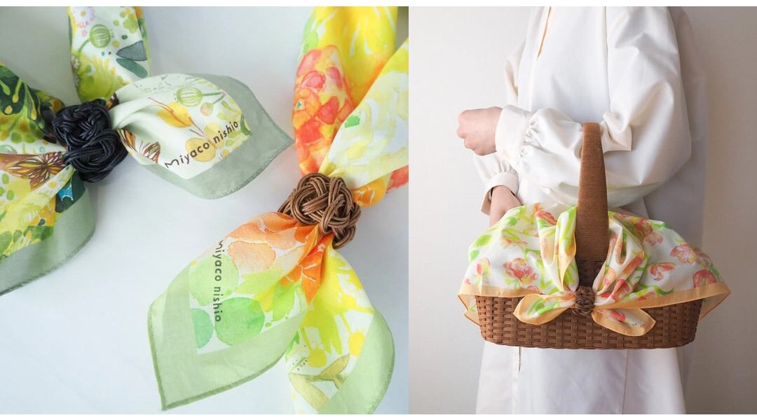 miyaco nishio から新商品のハンカチ、スカーフリング、ポーチが入荷しました。