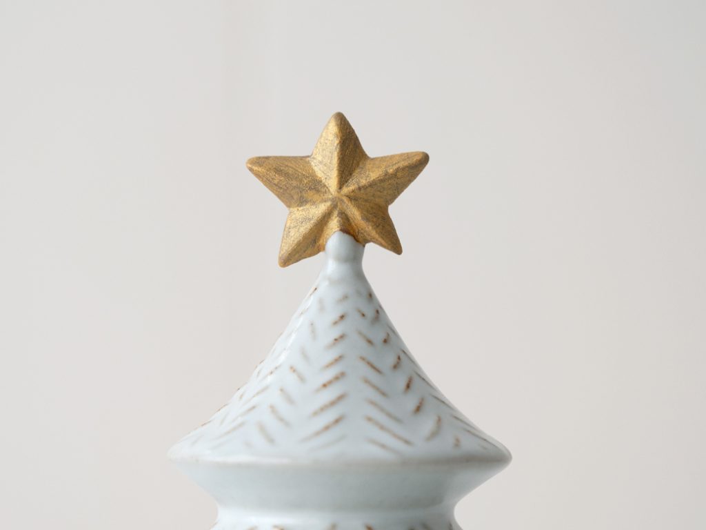 毎年人気のsen「星付きツリー」のご予約を開始しました。ぽてっと可愛いかたちの白いツリーにゴールドがきいたデザインです。